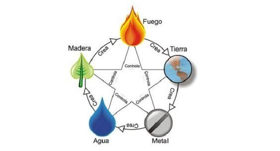 Madera, fuego, tierra, metal y agua.