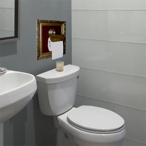 Nosotros hemos aprovechado el espacio sobre la cisterna colocando ahí uno de los portarrollos de lagoa, que parece un cuadro.