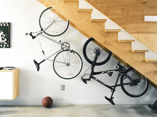 Guardar la bici en un espacio reducido puede ser un rompecabezas, así que por qué no colocarla bajo la escalera con unos ganchos.