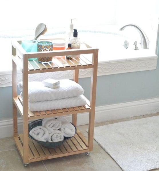 Para aquellos que desean opciones de almacenamiento versátiles, los carros portátiles son una opción conveniente. Estos armarios móviles se pueden mover fácilmente a diferentes áreas del baño según tus necesidades.