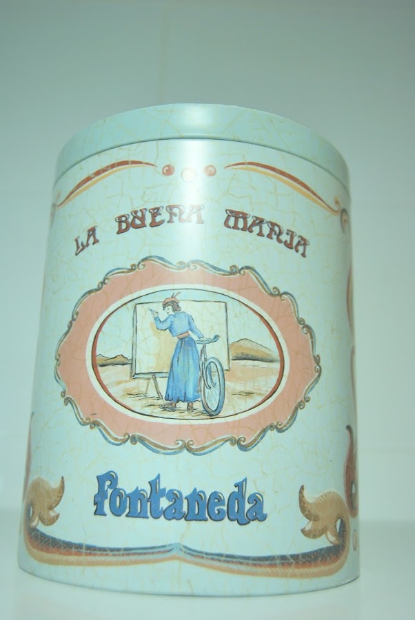Por último, en la decoración de la cocina no queremos algo cargante, así que hemos incorporado pocos objetos, por ejemplo esta lata antigua de galletas de la familia de Alberto.