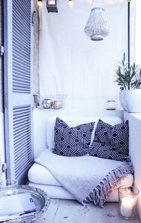 Éste es el típico balcón que hay en un montón de pisos. No cabe ni el tendal de la ropa. pero una superficie rodeada de cojines para tumbarte a descansar si que cabe!!! Así que por favor, si tenéis uno así en vuestra casa ya no tenéis escusa para utilizarlo.