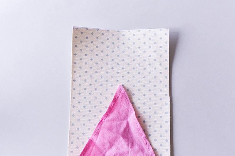 El mismo folio gris, bajo la tela blanca con motas azules y la pieza de algodón rosa se ve azul.