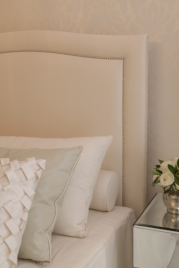 4* Decoración neutra, dejando piezas claves para resaltar la elegancia. En este caso la lámpara de araña es un pieza clave junto con los espejos de las mesitas de noche.