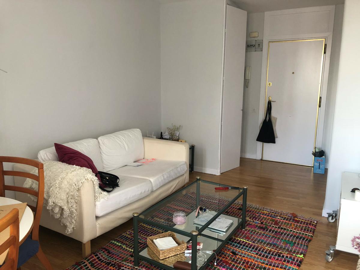 El espacio que me propuso cambiar fue el salón, que estaba tal que así. Un popurrí de cosas, aunque una muy buena base con la que empezar a trabajar, un suelo bonito y las paredes blancas y lisas.