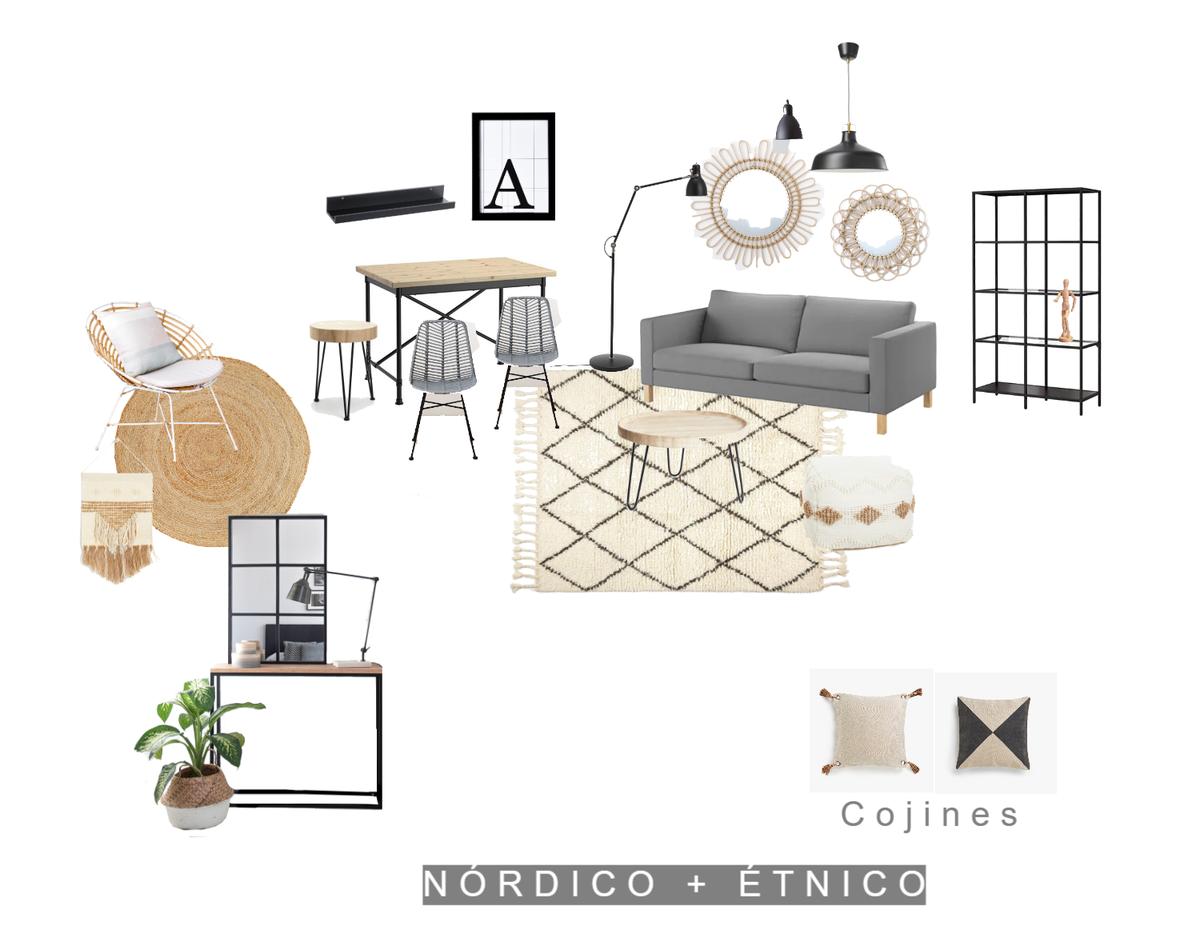 Después de todo este proceso, mi clienta lo tenia claro, quería un estilo nórdico y étnico, y tras una llamada telefónica y acordar los detalles, esta fue la propuesta.