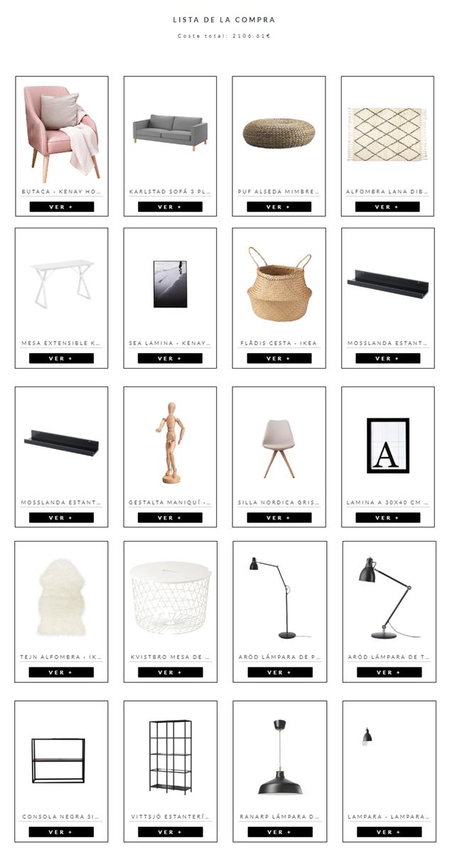 Y una lista con el mobiliario seleccionado, tiendas y presupuesto.