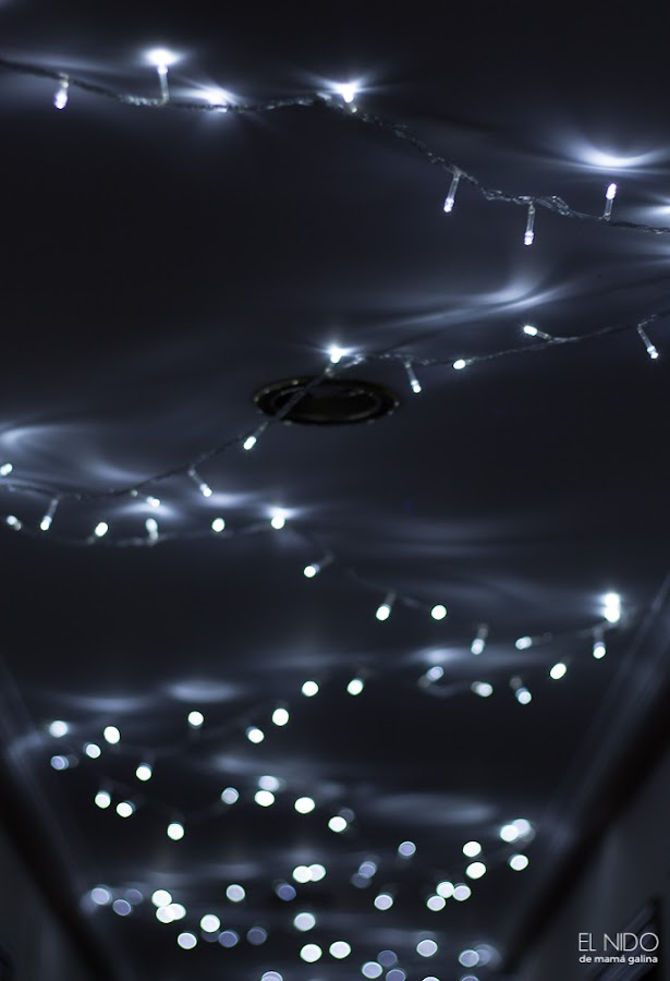 El post de hoy mas que un DIY, es una idea de decoración navideña, ya que no hay que hacer prácticamente nada, sin embargo el resultado es espectacular. He de decir que las fotos no hacen justicia al efecto tan mágico que crea este cielo estrellado de Navidad.
