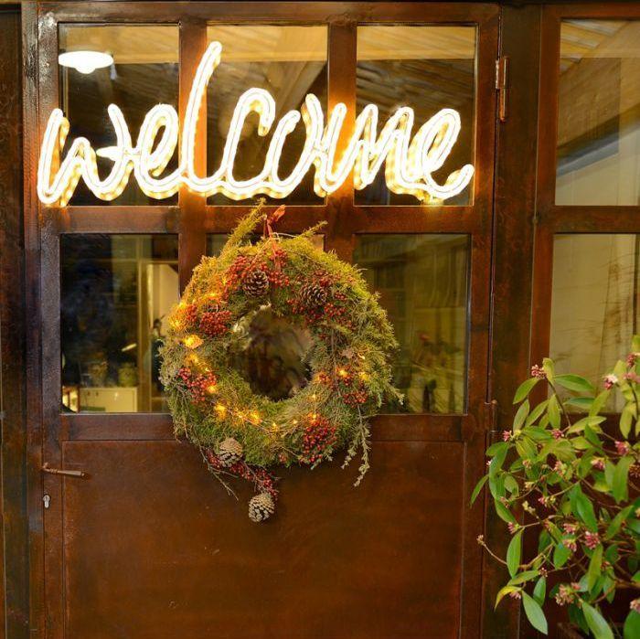 Corona de Navidad en la puertaNo es un adorno tradicional de nuestro país, pero se ha instalado con fuerza, especialmente en casas unifamiliares. Si además de la corona de Navidad más o menos sencilla quieres adornar el marco de la puerta, atrévete con guirnaldas a base de ramas de abeto, eucalipto u otras, sean naturales o no…