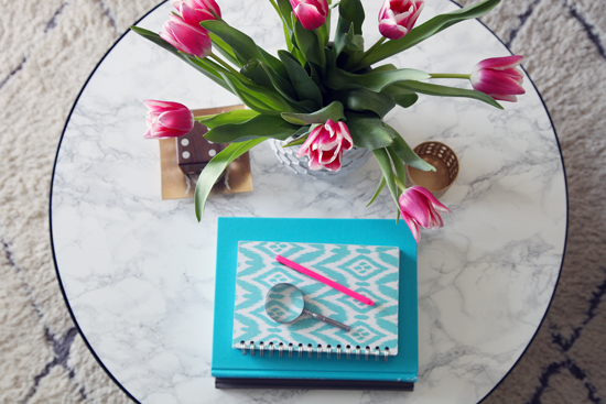 Retomamos el material de moda, el mármol. Hace justo una semana os mostraba como crear unos candelabros lowcost con efecto marmol. El handmade en aquella ocasión se trataba de trabajar con arcilla polimérica. Pero en este caso te enseñaré como crear una mesa con efecto mármol por menos de 50€ utilizando papel adhesivo con estampado marmolado, como en este ordenador portátil.