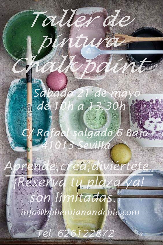 Y si te gustaría aprender ha hacer tus propias trasformaciones de muebles y/u objetos,te recuerdo que dentro de muy poquito ( 21 de mayo ) vamos a impartir un taller de pintura chalk paint¿Te gustaría participar?Cómo pincha en la foto te cuento todos los detalles. Date prisa quedan pocos días.