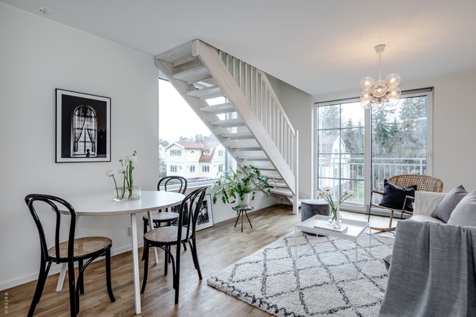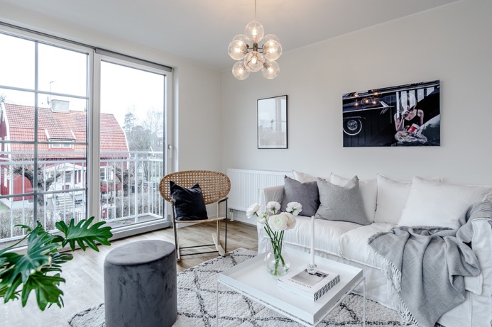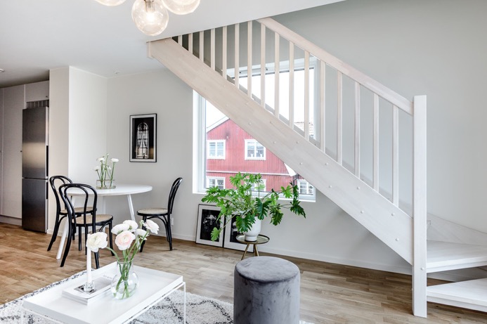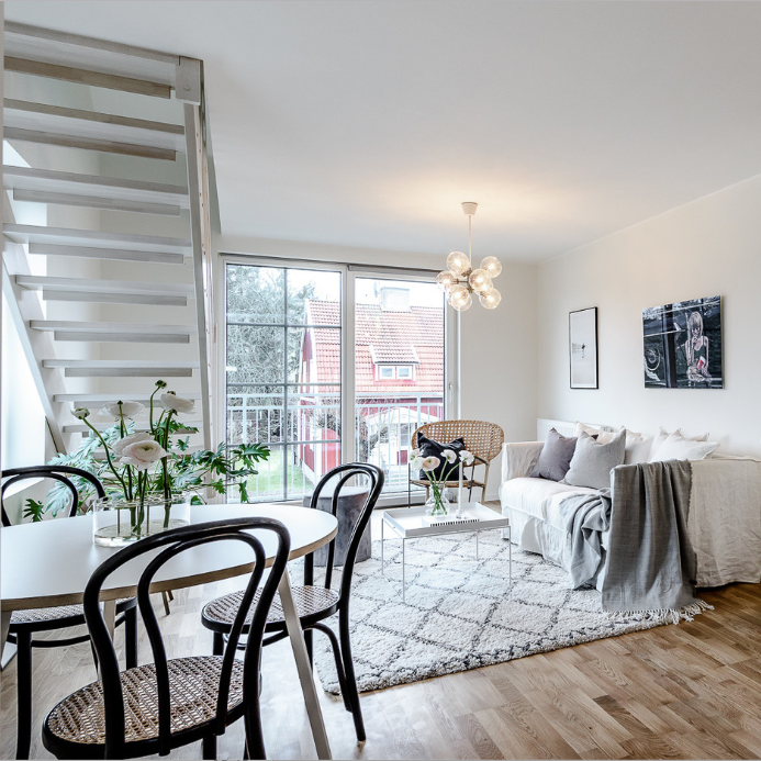 El salón de nuestros sueños, ¡impresionante! Blanco, con detalles en madera, abierto y con una ventana XL que permite que toda la luz se filtre a la casa al completo.
