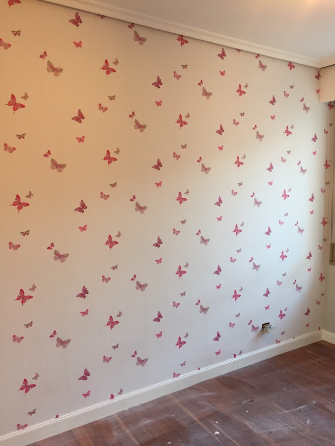 Este es el dormitorio de una niña. Es un papel divino que lo mismo sirve para una niña pequeña , que para una chica adolescente, o más mayor, incluso para mí que hace tiempo que dejé atrás la juventud (¡ snif ! ).