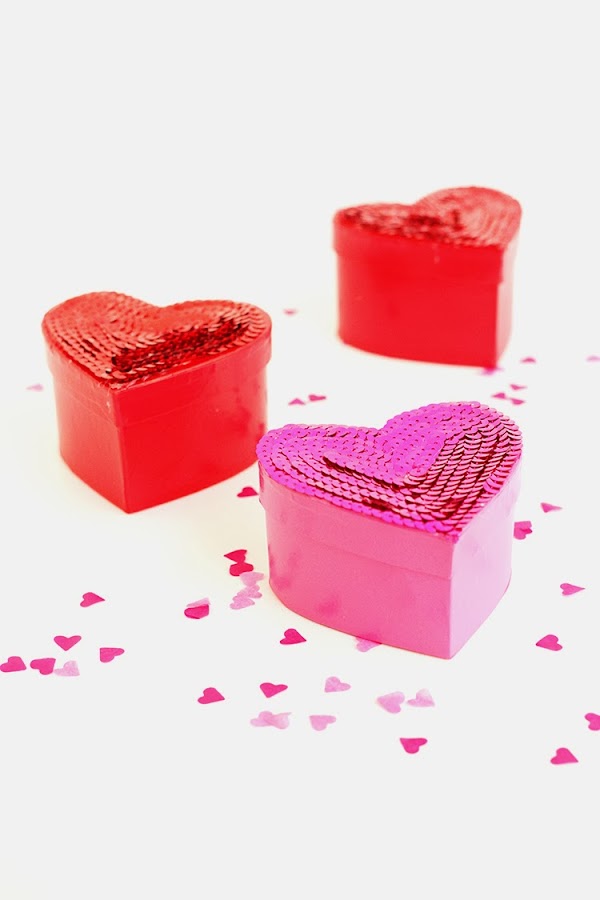 Para hacer estas cajas del chocolate con lentejuelas, necesitarás:
