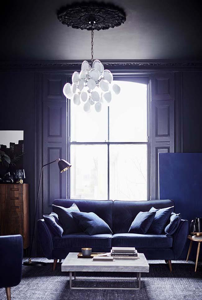 Un salón pintado en azul oscuro, por ejemplo, se convierte en el escenario perfecto para una decoración ecléctica y especial. Se incrementa el interés visual del espacio, lo que siempre merece la pena.