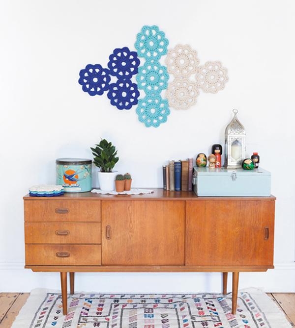 Fuente: Emma Lamb Esta es una idea genial para todos aquellos que se están iniciando en el mundo del crochet. Tejer un adorno para la pared puede resultar divertido y motivador. Siempre se trabaja con más ganas si tenemos un fin que perseguir.