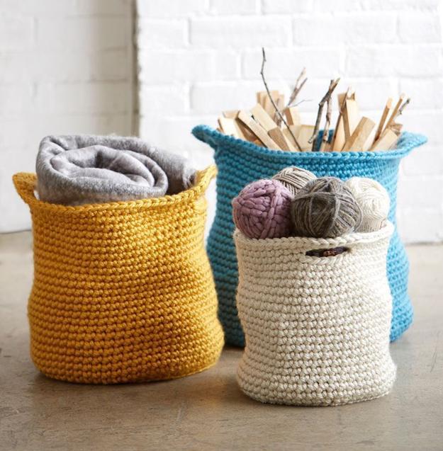 Fuente: Home Decor Ideas Me encantan estas cestas realizadas a ganchillo. Son perfectas para guardar miles de cosas y dejarlas a la vista. No solo son prácticas, sino que además decoran.