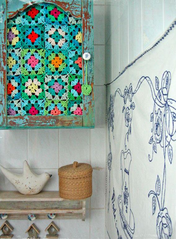 Fuente: Mollie Makes Y aquí tienes otra idea que seguro que te gusta. A mí me ha parecido de lo más original, y una forma genial de poner color allí donde lo necesitas. Se trata de realzar la puerta de un armario con una aplicación tejida a crochet.