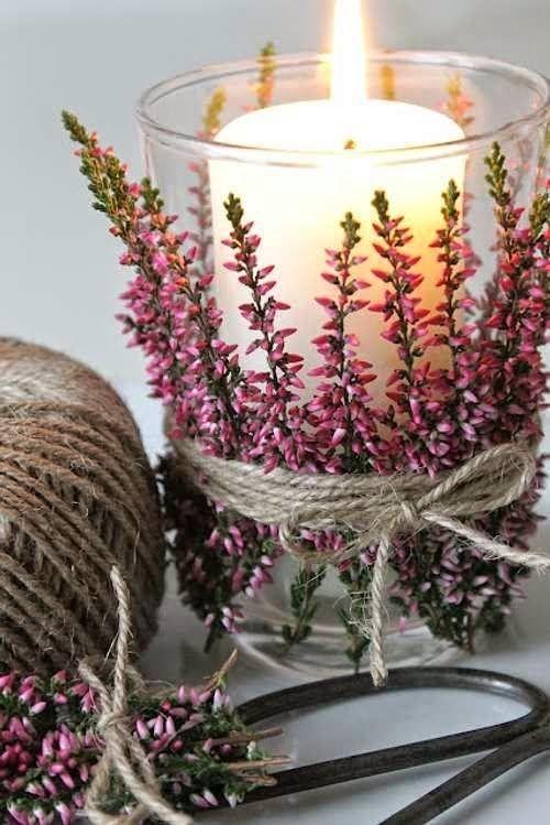 ¿Por qué digo esto? Porque hay tantas velas de mil colores, formas, maneras y también hechas para decorar con otros materiales, que es casi imposible que no te guste ninguna combinación con ellas.Las puedes encontrar o las puedes decorar tú mism@ con florecitas silvestres: