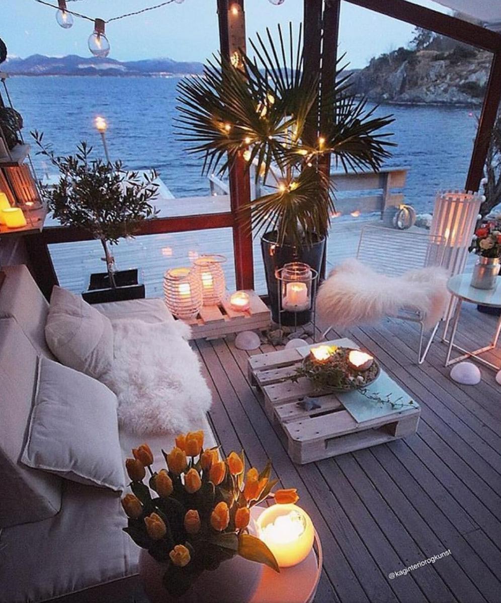 E incluso para crear un ambiente maravilloso para una velada, ya sea de lo más íntima y romántica, como para disfrutar entre amigos en una pequeña terraza, decorada para ello.