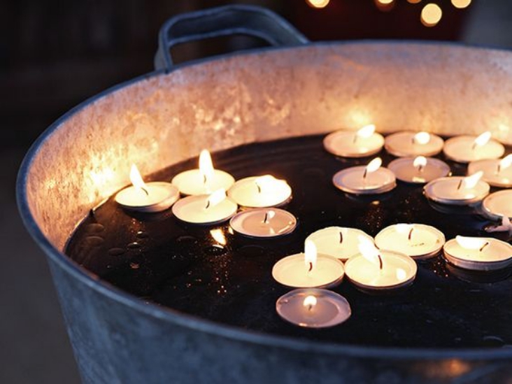 Sobre todo si la velada se desarrolla al aire libre, llenar un balde grande de agua y dejar flotando varias velas pequeñas encendidas le dará un toque muy elegante al ambiente. Por supuesto, lo ideal es que el balde sea metálico (y no de plástico y de colores, aunque todo depende del ambiente exterior), además de que puedes decorar sus asas con cuerdas o algún bonito detalle.