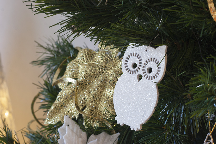 ¡Tened en cuenta el equilibrio de tamaño, color y textura! Normalmente colocaremos los adornos más grandes en la parte inferior del árbol, y las piezas más pequeñas por arriba.