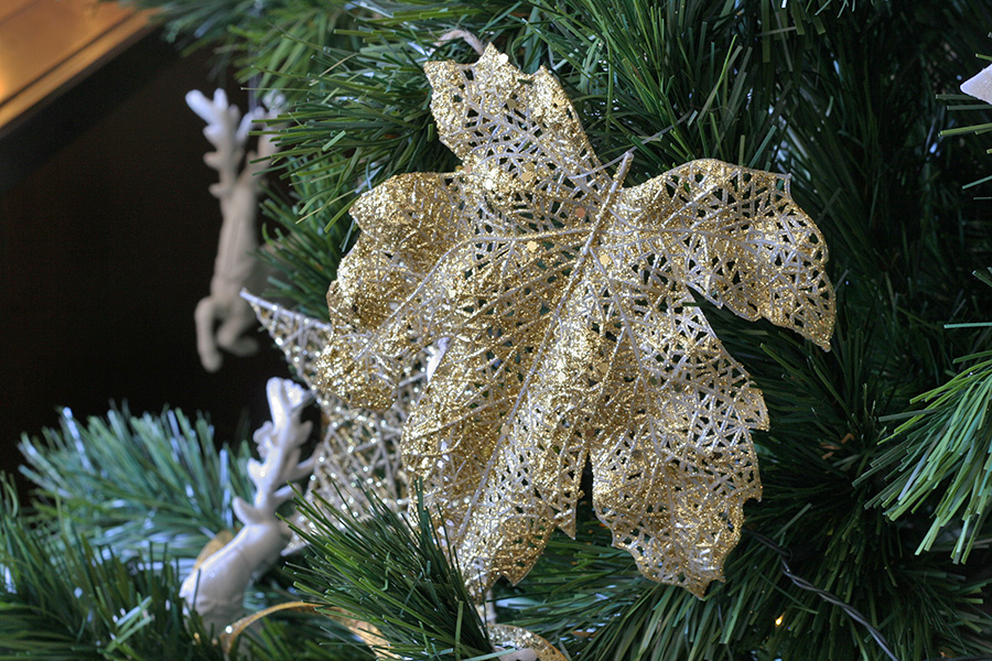 Después de un par de temporadas usando árboles navideños handmade como este o este, este año decidimos en familia que queríamos decorar el árbol navideño de toda la vida, y además hacerlo en blanco y dorado. Les pareció genial ¡Sobre todo cuando vieron todos los adornos que Leroy Merlin tenía en esos colores! ¡Su catálogo navideño es super amplio y a buenos precios!
