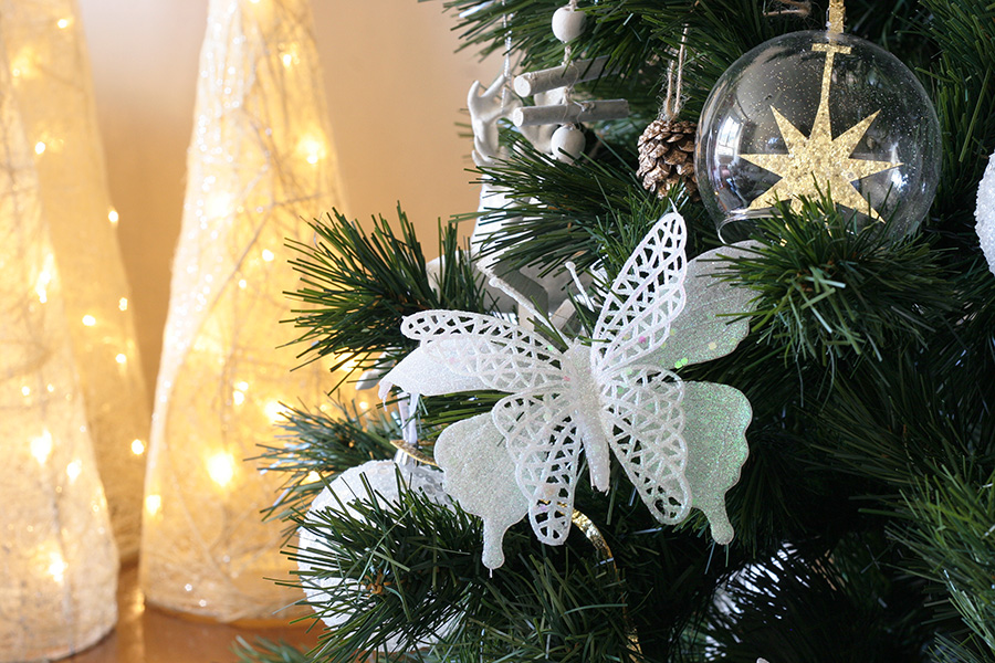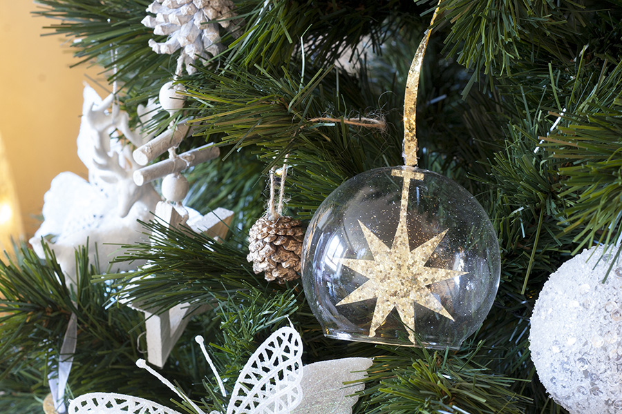 Lo habitual suele ser colocar los adornos en las puntas de las ramas, pero es muy buena idea empezar por el centro del árbol, más cerca del tronco, y continuar hacia afuera a lo largo de las ramas. Conseguiremos una sensación de profundidad.