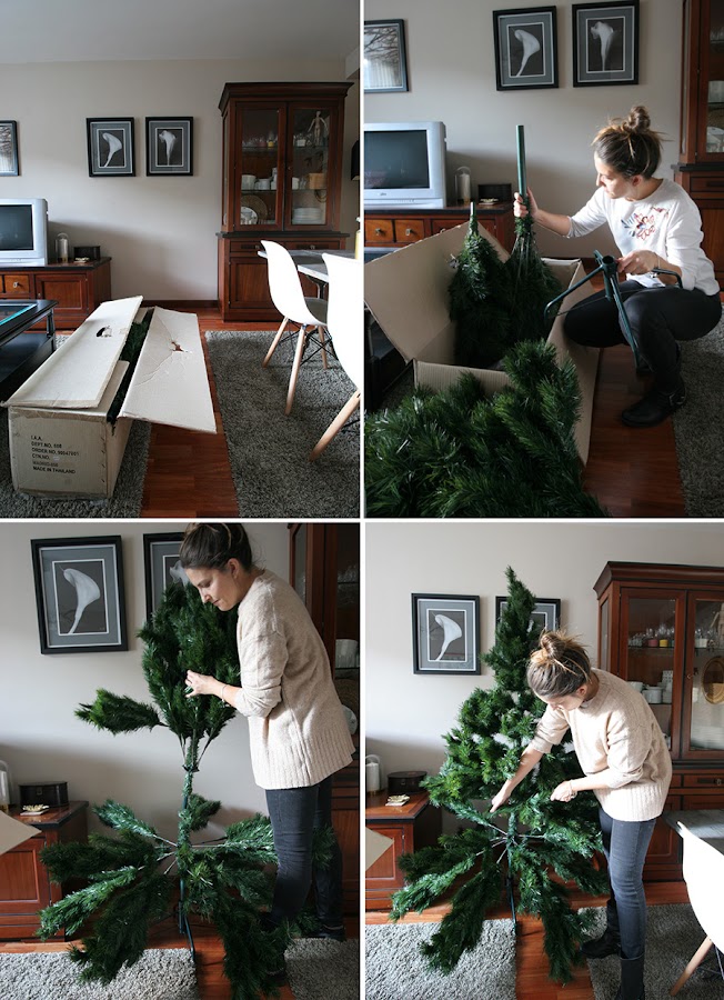 Un truco para que el árbol ocupe menos espacio es pegarlo bien a la pared y colocar las ramas un poco dobladas. Al fin y al cabo, esas ramos nos vamos a decorarlas porque no se ven... pueden estar menos estiradas no?