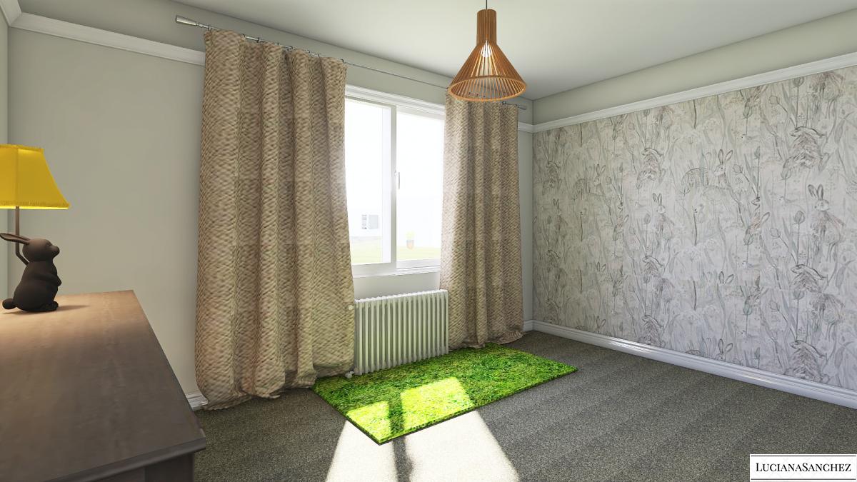 También podéis ver la primera imagen del diseño 3D, que nos muestra cómo se quedarían los colores y el papel en la habitación.