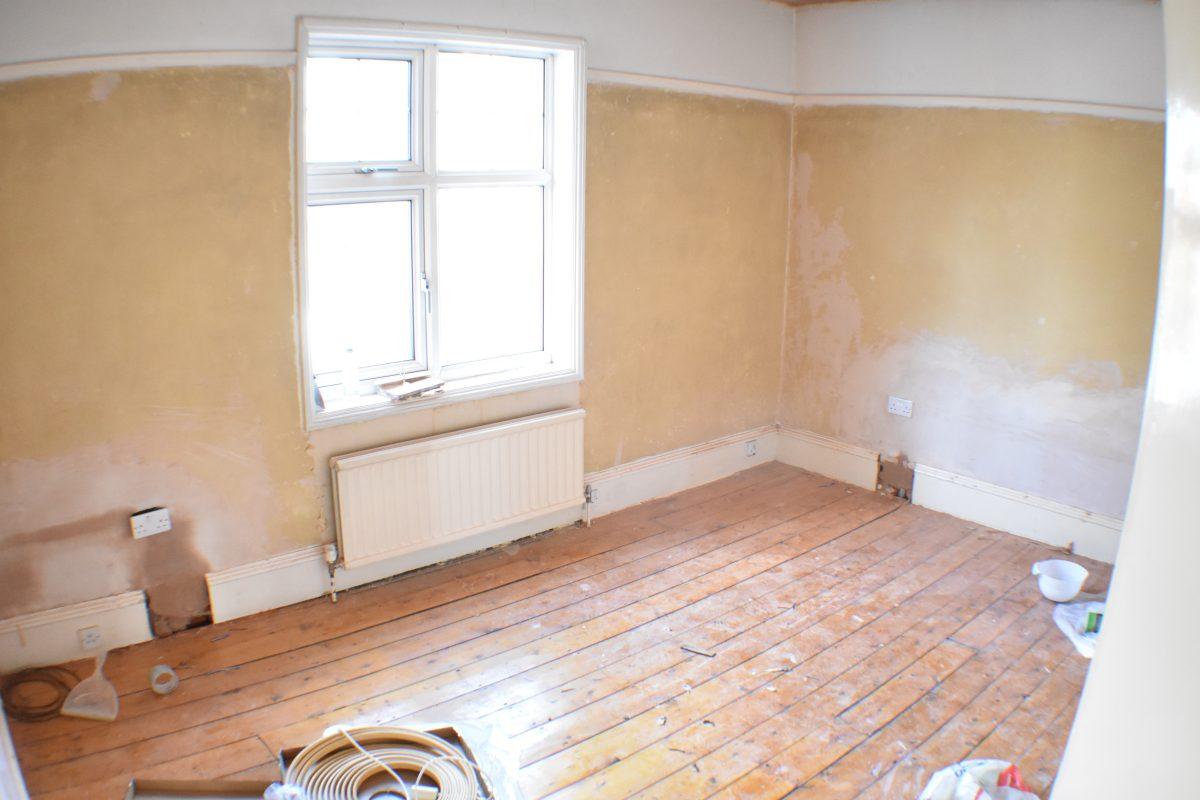 Lo primero fue deshacernos de esa moqueta y ese papel de pared, que ya habían servido su función con creces, lo cual nos produjo una gran satisfacción. Y sí… en este punto tuvimos ayuda de algunos familiares, porque teníamos los días contados, así que cualquiera que venía de visita sabía lo que le tocaba… tuviera o no habilidades.