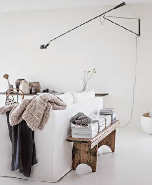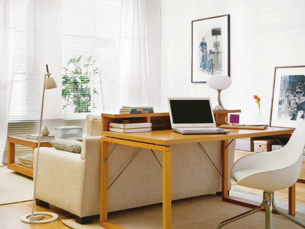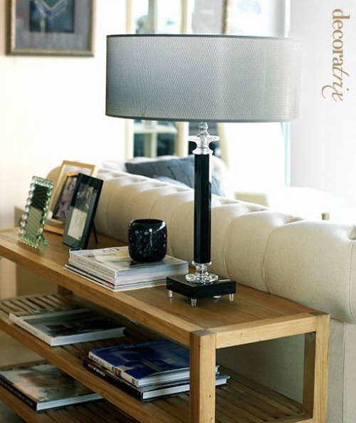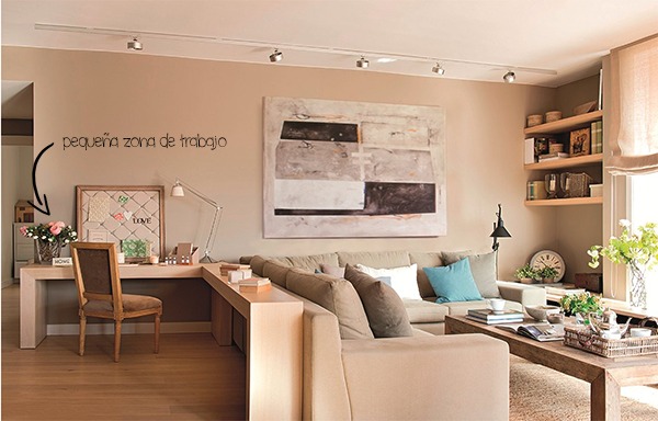 Si eres de l@s que necesitan tener en casa un lugar de trabajo, tal como comentábamos en el post 7 pautas para crear tu espacio de trabajo en casa, ubicar esta zona tras el sofá podría ser una buena opción si gozas del espacio suficiente. Al mismo tiempo crearás en tu sofá un punto de lectura alimentado por la iluminación que utilizas en la mesa de trabajo ;)