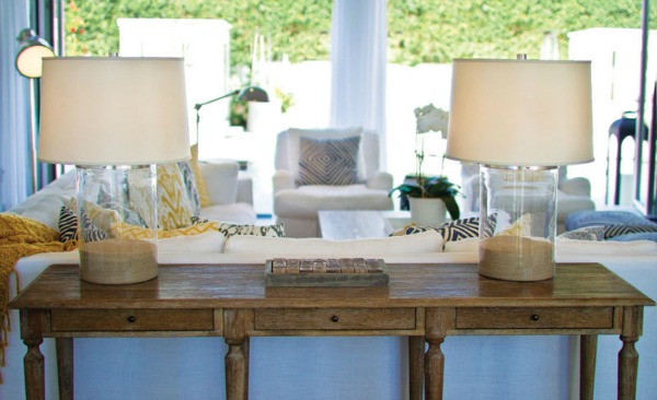 Decorar la trasera de un sofá colocando un mueble aparador, resultará sumamente útil si tienes instaurada la zona comedor tras él. Una zona de almacenaje en la que guardar menaje o simplemente te permita descargar el mobiliario de la cocina siempre será muy práctico y de agradecer.