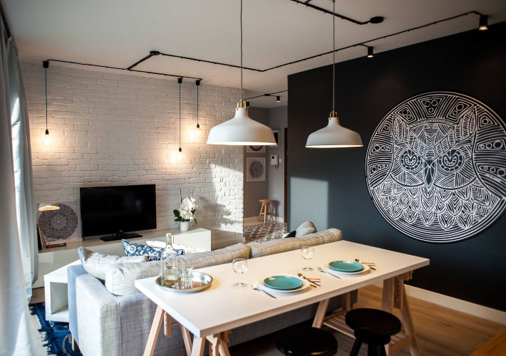 Pequeña zona de comedor:La trasera de un sofá puede convertirse en el lugar perfecto para instalar el comedor. Esta idea funciona muy bien para los espacios abiertos. Todo es cuestión de distribución en función del espacio.