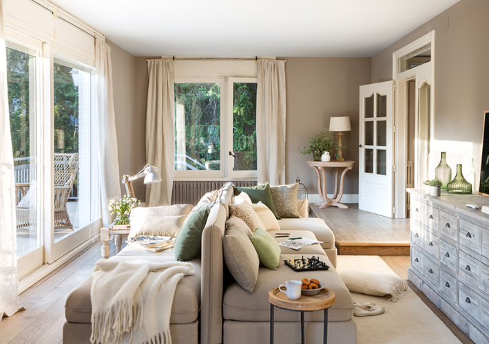 Un banco detrás del sofá te permite disponer de una zona extra de descanso y además te puede servir para dejar alguna cosa.