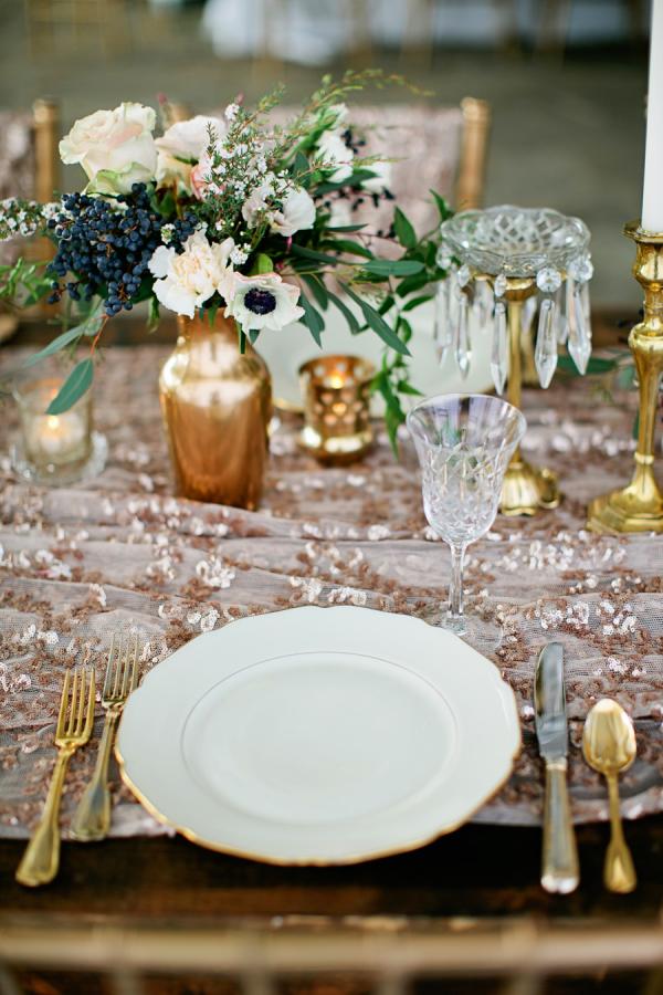 El exceso se materializa en el uso de materiales preciosos como el oro, la plata, el marfil o el nácar. En nuestro caso, elegiremos para nuestra mesa cuberterías decoradas con finas ornamentaciones en plata antigua o, directamente, menaje dorado, una tendencia en alza en la actualidad.