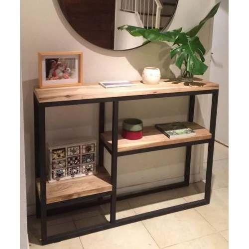 Un toque de madera y hierro en tu recibidor le dará ese tono industrial que quizá busques. Lo puedes endulzar un poco con algún color pastel o alguna fibra más delicada para tus adornos. Así no será tan frío pero seguirá estando presente.