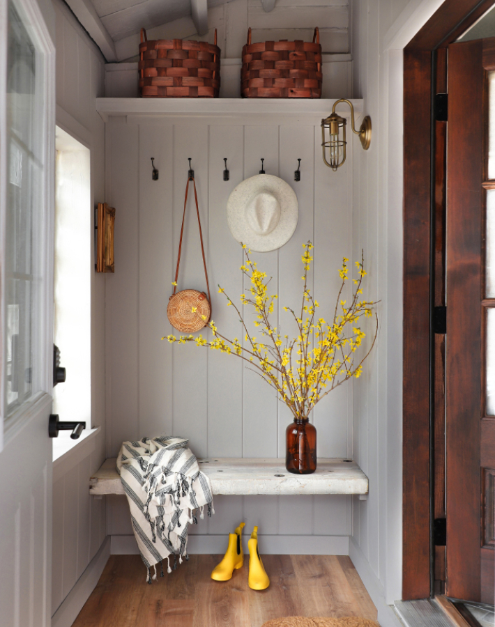 “Mudroom literalmente es la habitación del barro. Es una entrada acondicionada para el cambio de calzado y de ropa del exterior al interior. Es útil sobretodo en casas de campo o en casas de países donde hay mucho contraste entre la temperatura exterior y la interior. A mí me parecen preciosas y además ayudan a organizar y ordenar el eterno caos de mochilas, botas, abrigos, etc