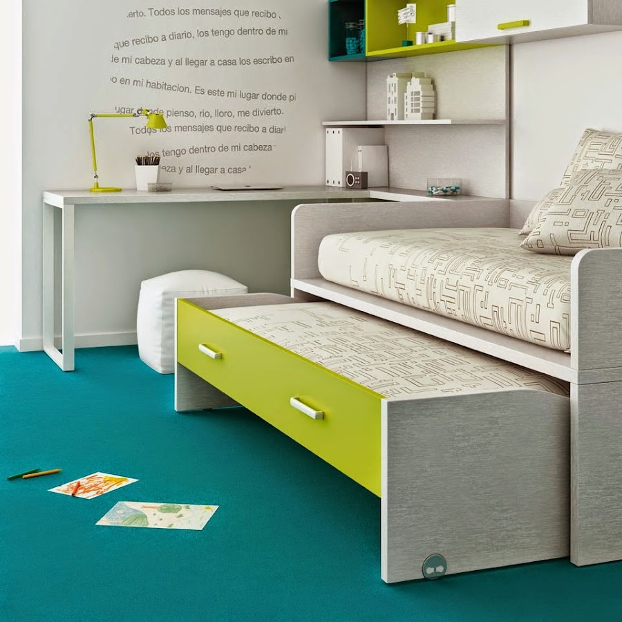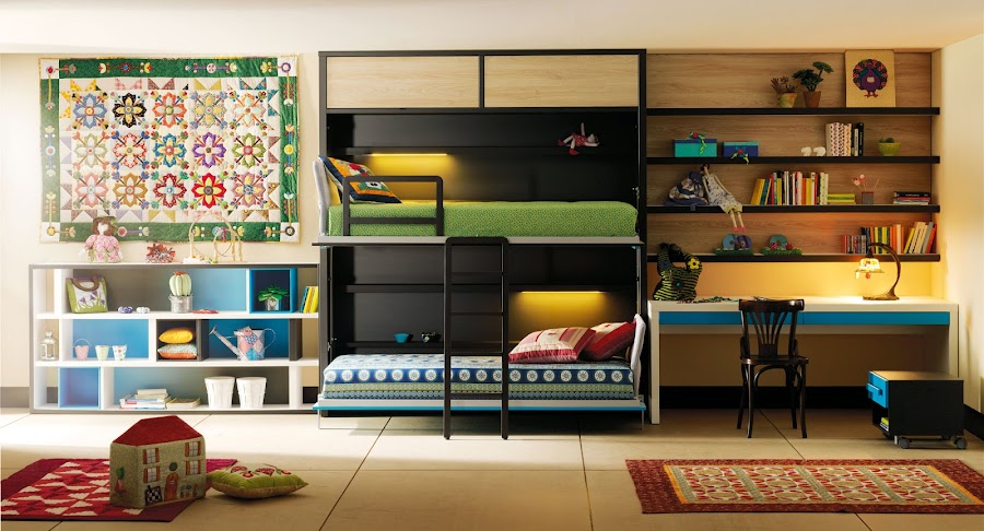 Sin duda, las camas abatibles son ideales, para poder aprovechar el cuarto por el día dejando sitio, para jugar o estudiar.