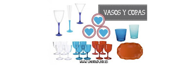 * VASOS Y COPAS, de plástico rígido muy resistente y con colores ideales para acompañar a la vajillas desechable.