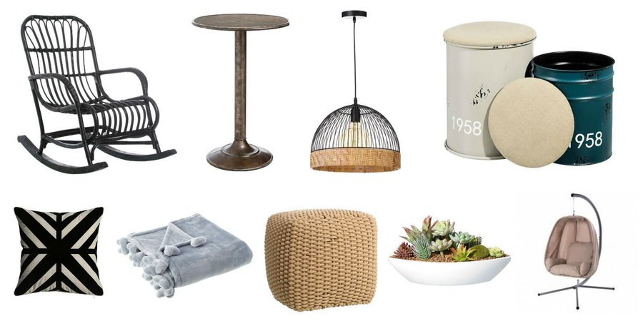 Si te decides por esta tendencia, opta por colores neutros y atrévete a decorar con negro. El protagonista será un cómodo sillón, que puede ser en forma de columpio o, incluso, una mecedora como esta (que puedes encontrar aquí), que no necesita instalación. Añade algún puf para dar más confort al lugar y no te olvides de poner el toque verde con cactus o suculentas.