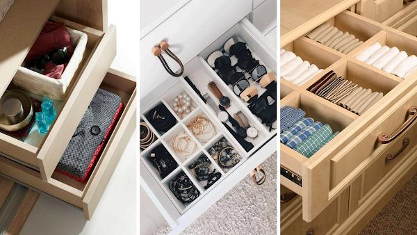 Hoy día, se puede utilizar los cajones con divisiones ya que en ellos se pueden almacenar ropa interior y otras prendas muy ordenadamente. Doblar las prendas en tres y guárdalas utilizando cajas dentro de los cajones es también una opción. Hacerlo por colores y estampados ayudará a verlo todo. Los pantalones pueden ser colgados en una percha múltiple para economizar espacio, o bien, doblados solo por la mitad y puestos en una repisa. Las prendas dobladas no deben hacer pilas demasiado grandes que puedan caerse.