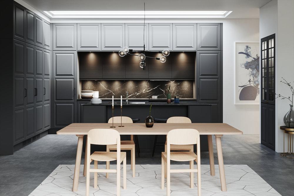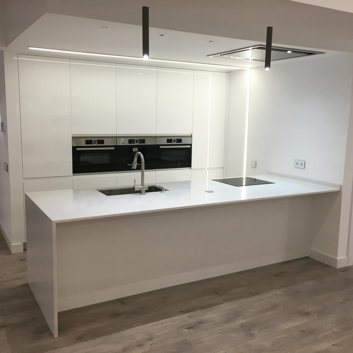 Una perfecta iluminación debe ser homogénea y uniforme, permitiendo llegar a todos los rincones de la cocina. Es imprescindible que este tipo de luz se adapte a la luz natural para que quede integrada de forma innata, dotando a la sala de una imagen única.