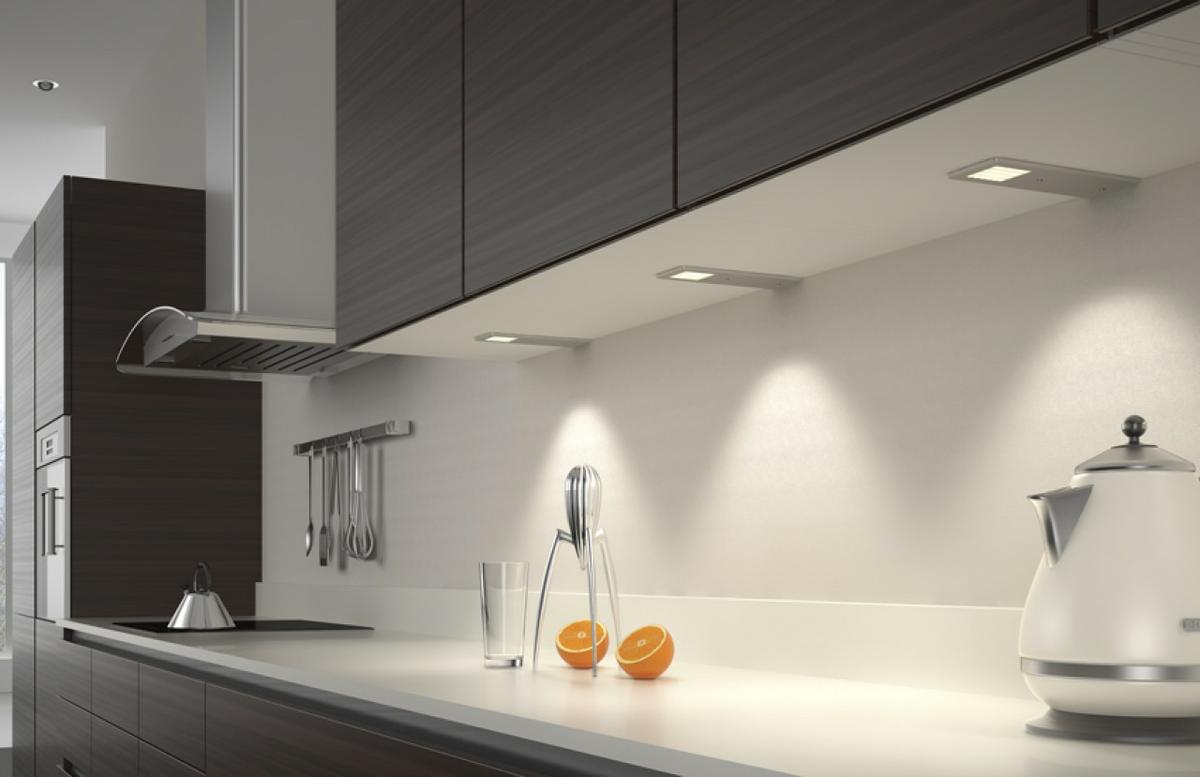 Para la iluminación de encimeras es recomendable la colocación de tiras LED, puesto que ocupan un menor espacio y ofrecen un extra de luz realmente beneficioso para aquellas tareas que requieran una mayor atención en la cocina. También pueden colocarse los LED en la lámpara de la campana de cocina con el fin de aumentar la seguridad durante el cocinado. Con intención de obtener un mayor ahorro, es imprescindible poseer un interruptor de luz para cada zona de la cocina que tenga colocadas luces LED pues, de esa forma, se usará únicamente la luz necesaria en cada momento.