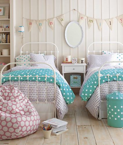 En el caso de dos chicos o de un chico y una chica, es cuestión simplemente de combinar los colores de los textiles y la decoración de cuadros, cajas, estantes. La base en color blanco (para las paredes y los muebles) creo que es muy flexible y te permite infinidad de opciones. Como yo siempre digo, con el blanco es difícil equivocarte. El gris también me parece una opción muy acertada para las paredes.
