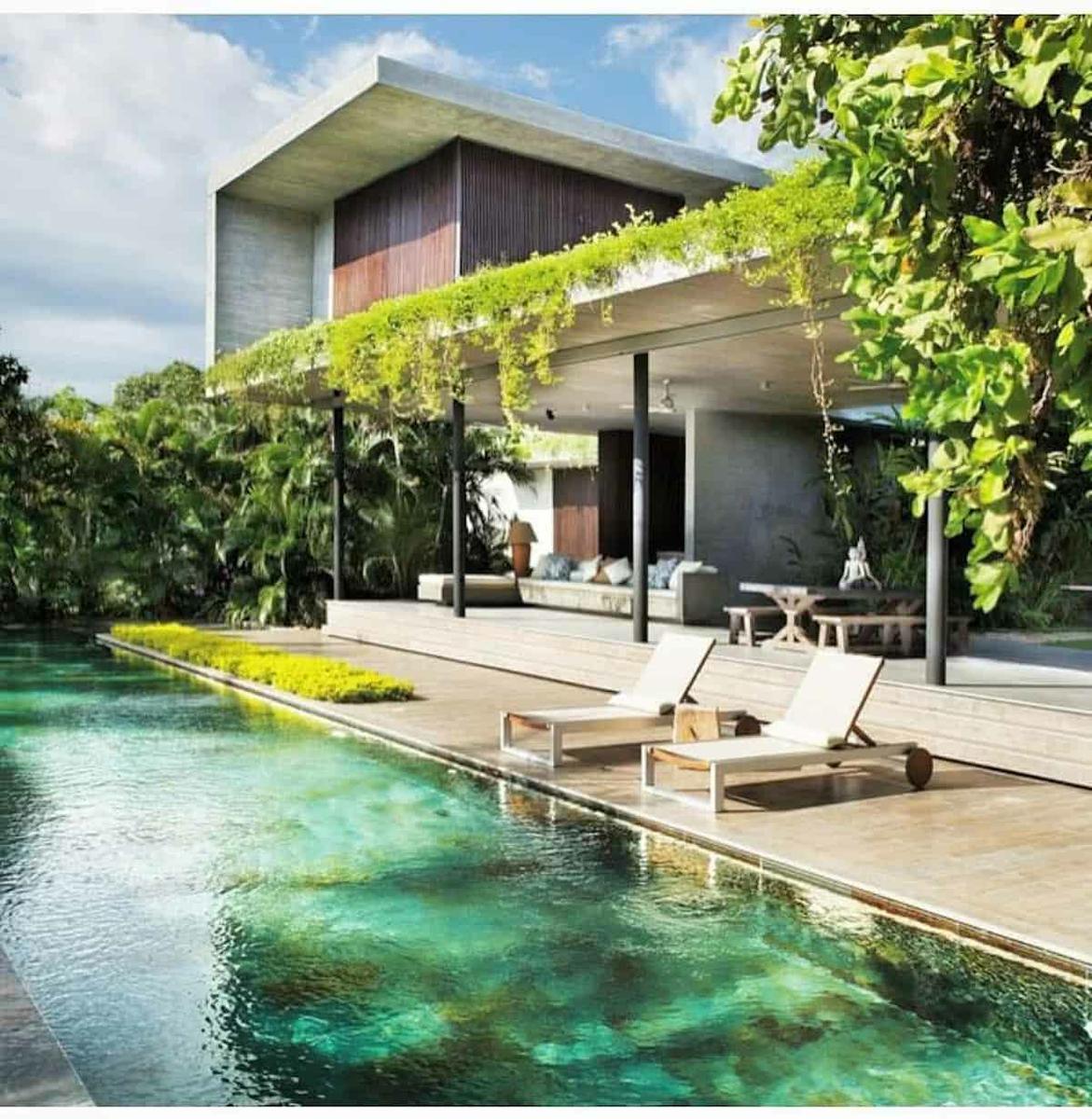 Fuente: pinterest El color del agua de la piscina en azul está asociado al agua limpia del mar o de los arroyos. La elección de este color conseguirá un efecto relajante perfecto para disfrutar de un agradable baño. Es adecuado para piscinas familiares o aquellas personas que buscan paz y relax.