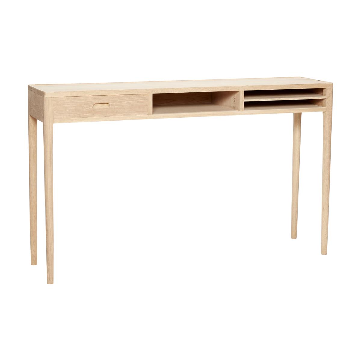 Se trata de un mueble estrecho que dispone de cajones o espacios de almacenaje pero que no pierde el diseño y estilo de las consolas tipo balda. Existen modelos más compactos y modelos más ligeros, como esta consola de Kulunka Deco .Perfectas para: espacios pequeños que necesitan un extra de almacenaje: