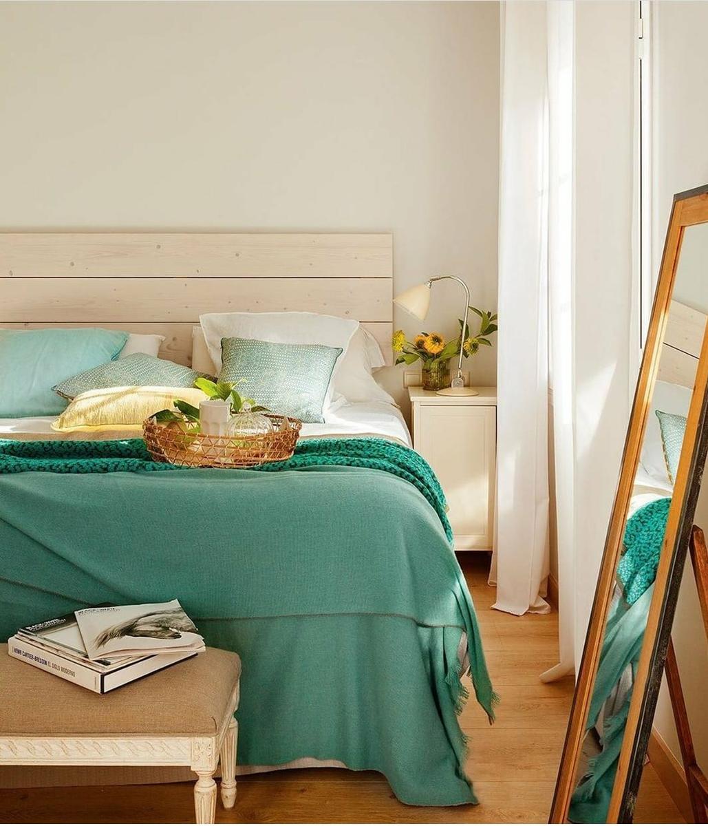 Si ya existen otros estampados en el cuarto, mejor elegir una colcha o edredón en un tono liso y suave. Como por ejemplo: