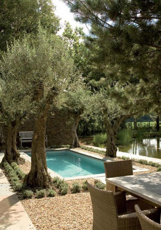 Un aspecto importante, de los más decisivos en lo que a este tema se refiere, es decidirse por árboles de hoja perenne. No querrás que, pasado el verano, las hojas se caigan al suelo y te pases los días recogiéndolas por todas partes. Eso sin contar lo que pueden manchar el agua de la piscina.
