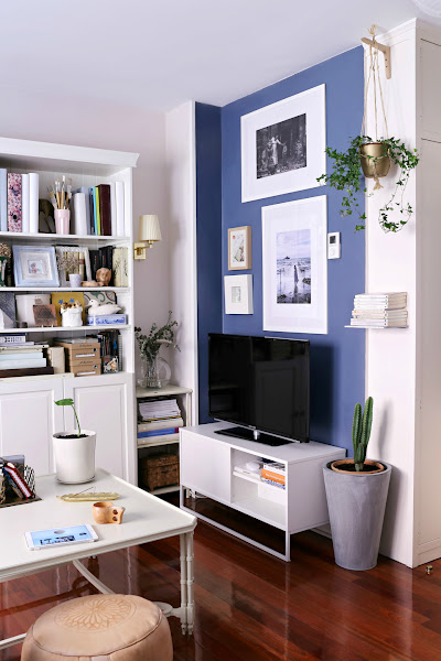 una pared de acento pintada en azul (por si no la recordáis aquí)